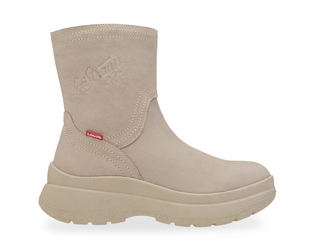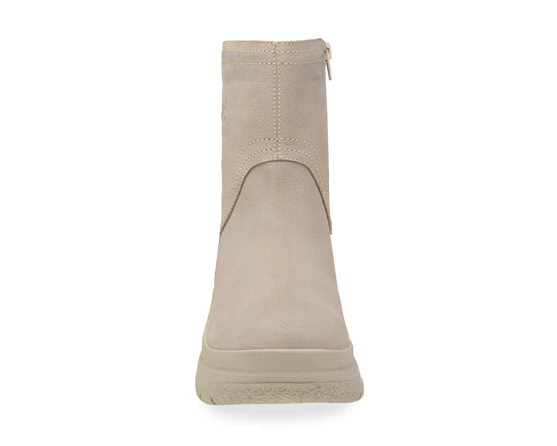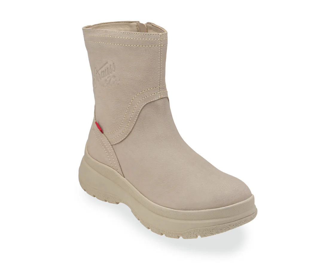 Bota monocolor de tubo medio con inspiración utilitaria. Su suela corrida moderna con piso dentado ofrece estabilidad y ligereza al caminar. Fabricada en piel nobuck con graneado natural, cuenta con un cierre interno para mayor comodidad. Forro de malla textil y plantilla con espuma reciclada para un calce suave y cómodo.